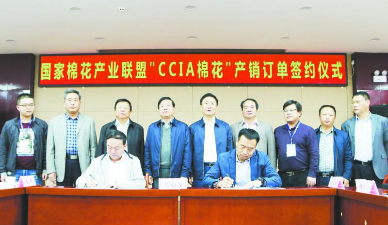随后,国家棉花产业联盟向七师授予“国家棉花产业联盟新疆生产建设兵团第七师实验区”牌匾。在国家棉花产业联盟“CCIA棉花”产销订单签约仪式上,七师供销合作总公司与德州恒丰集团等三家棉纺企业签订了“CCIA棉花”产销订单。